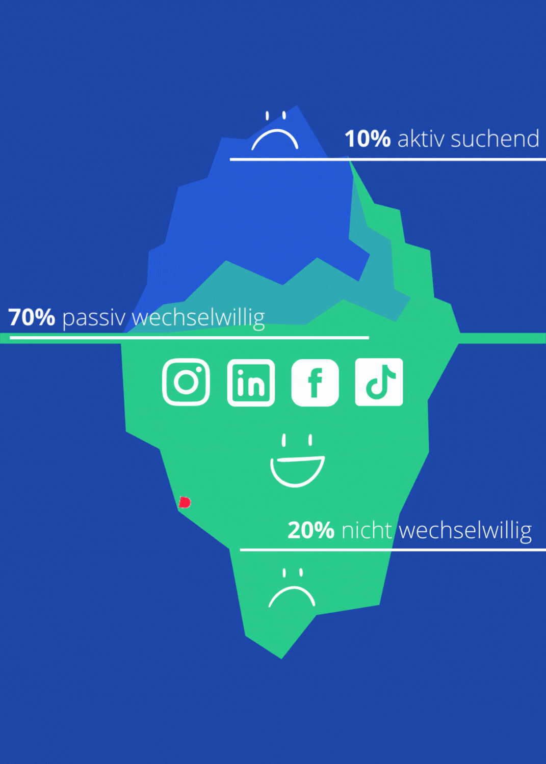 Verabschieden Sie sich vom veralteten Eisbergmodell – und von ineffizienten Recruiting-Methoden! Dank unseres modernen, vernetzten Ansatzes erreichen wir sicher alle relevanten Kandidaten für Ihr Unternehmen.